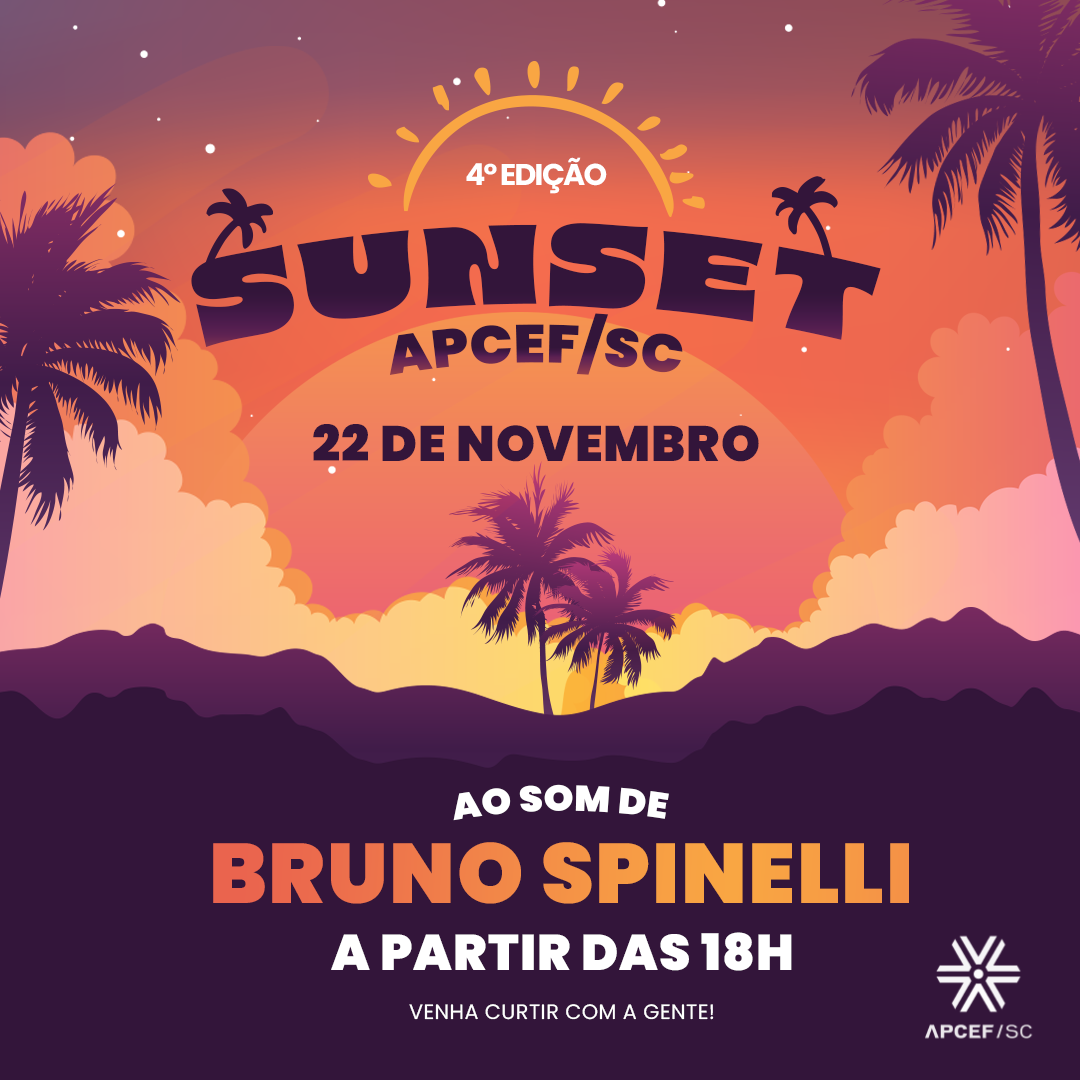 No dia 22 de novembro, a partir das 18h, a APCEF/SC convida seus associados, dependentes e convidados para a 14º edição do evento Sunset, que será realizado na Sede Balneária de Jurerê.