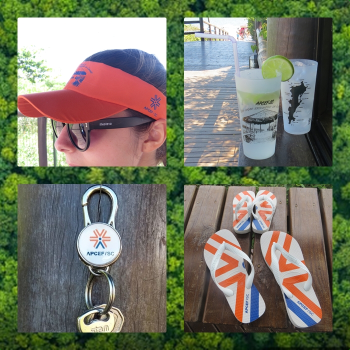 Chegaram novos itens para compor o ‘elenco’ de produtos personalizados da Apcef-SC. Além da toalha de praia, agora temos viseiras, copoeco, chaveiro e chinelos para adultos e crianças. Passe na recepção da Apcef-SC e leve para casa os souvenirs do seu lugar exclusivo em Jurerê!