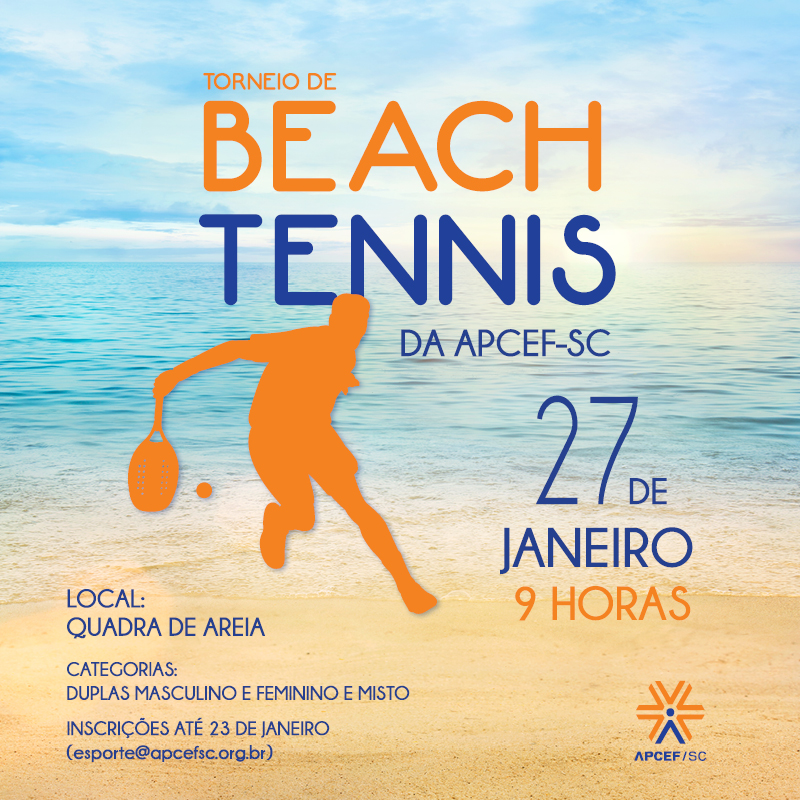 Os associados da Apcef-SC têm agora uma nova modalidade esportiva para praticar na quadra de areia da associação. No dia 27 de janeiro iniciaremos a pratica de Beach Tennis. O esporte, originário da Itália vem ganhando adeptos pelo mundo a cada ano e agora entra na lista de atividades da Apcef. As raquetes e as bolinhas especificas para a modalidade foram adquiridas recentemente e a estreia na quadra será feita pelas equipes inscritas para o nosso primeiro campeonato. Vamos experimentar o material em quadra?