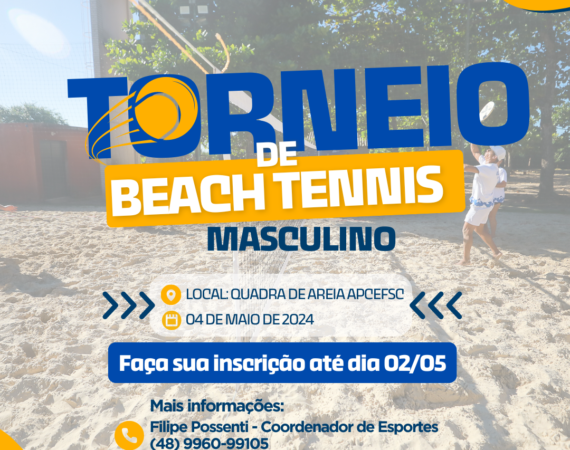 TORNEIO BEACH TENNIS MASCULINO MAIO 2024 Inscrições Abertas para o Torneio de Beach Tennis - MASCULINO FORMATO REI DA PRAIA Preparem-se, amantes do Beach! As...