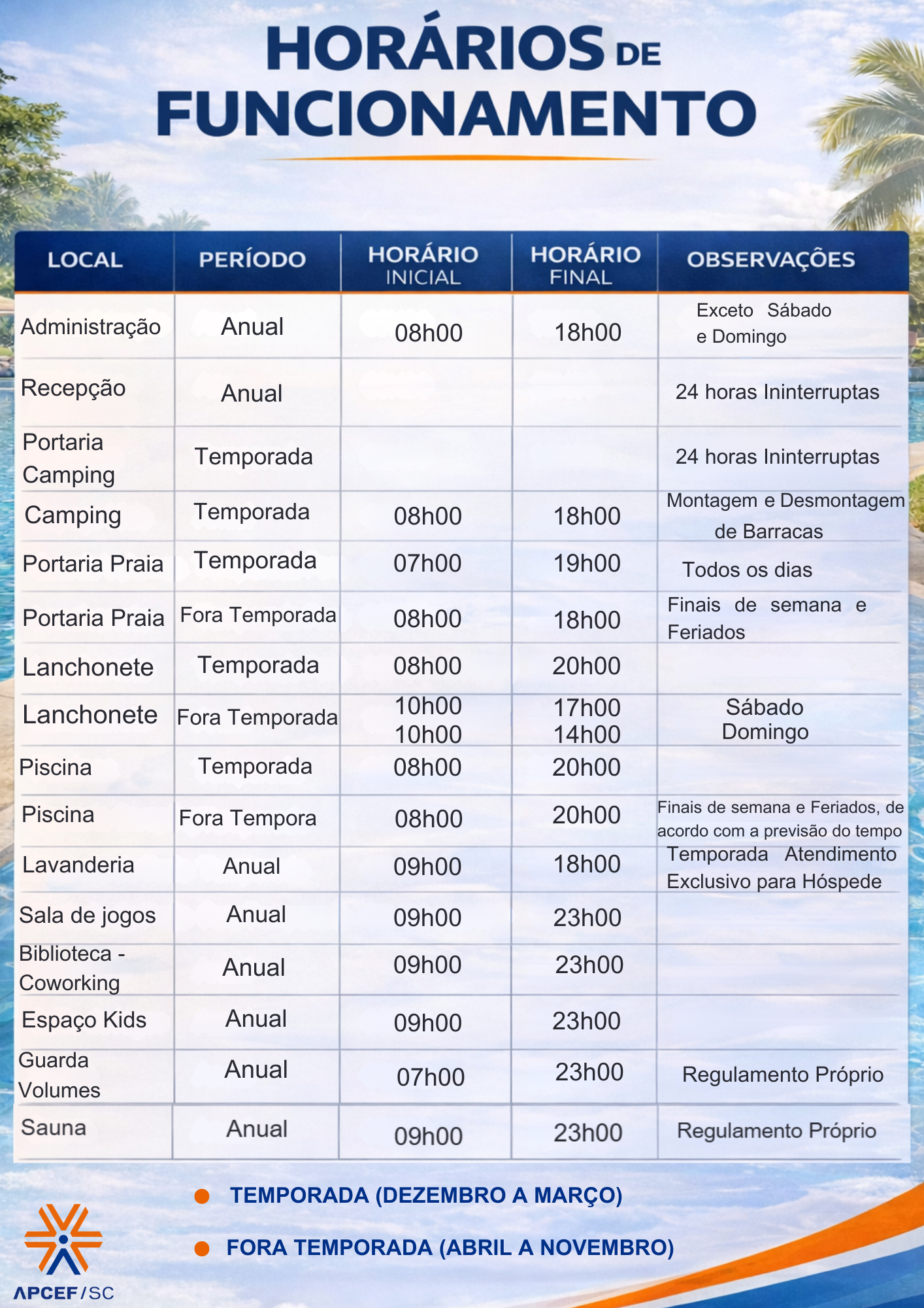 Acompanhe os horários de funcionamento da Sede Balneária em Jurerê.