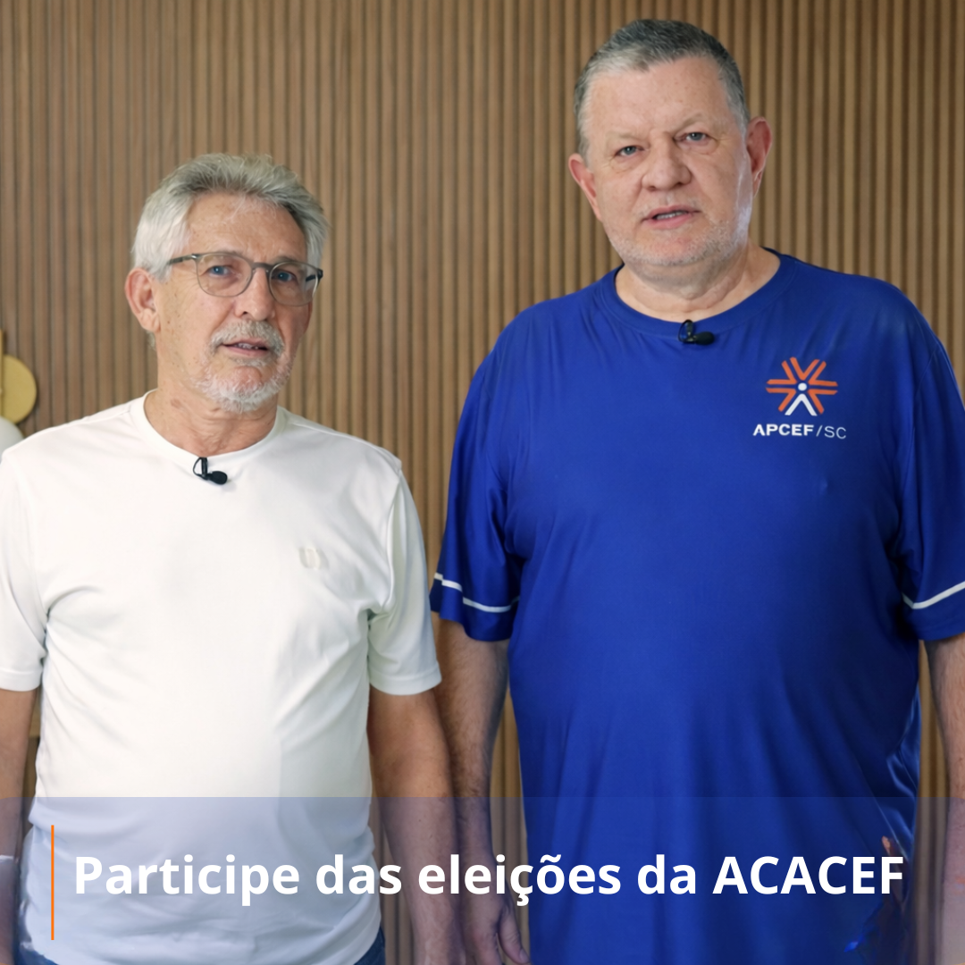 ELEIÇÕES ACACEF Marcelo Boeing, presidente da APCEF/SC deixa uma mensagem aos associados e associados e manifesta o seu apoio à candidatura de Rui Tadeu Moreira e na Chapa 1 — “Diretoria que escuta e abraça” Marcelo destaca que este momento vai além de uma eleição: