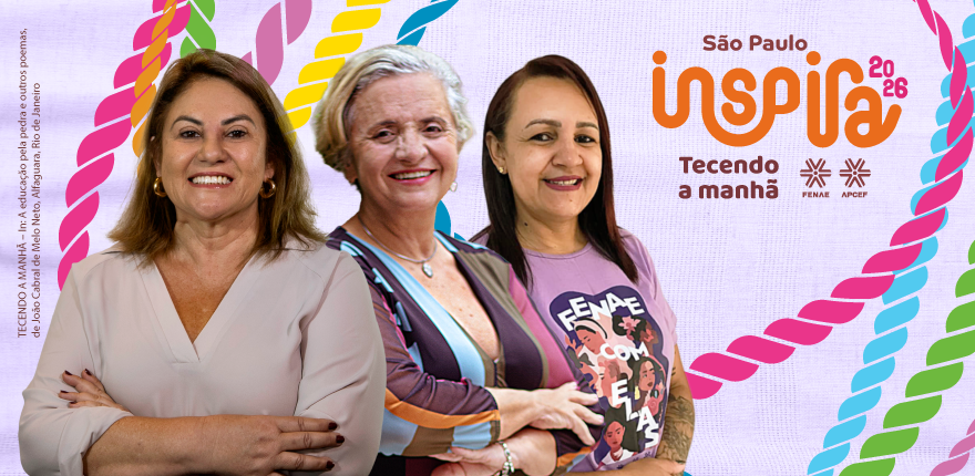 Ao lado de uma das beneficiarias do projeto desenvolvido na Apcef/SP, as diretoras ocuparão o palco para apresentar o painel “Programa Movimento Solidário e Campanha Fenae Com Elas”. Além dos projetos desenvolvidos para ajudar milhares de pessoas em todo o país, elas falarão sobre as ações da Campanha Fenae Com Elas, focadas no empoderamento de meninas e mulheres com foco no fim do feminicídio.