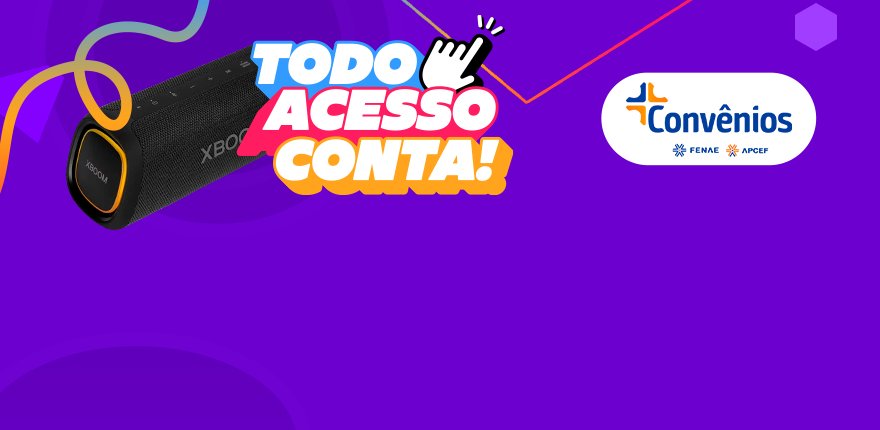 No Clube de Vantagens da Fenae e das Apcefs, tem campanha “Todo Acesso Conta”. Até o dia 31 de março, o empregado associado que acessar a plataforma www.fenae.org.br/convenios concorre a uma caixa de som LG XBOOM XG7S. O sorteio ocorre em 1º de abril. E assim será durante todo o ano.