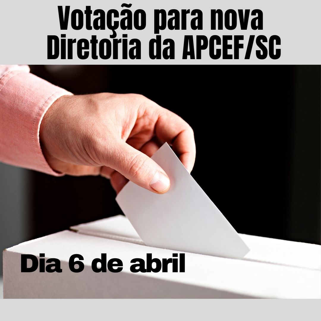 No dia 6 de abril será realizada a votação para a nova Diretoria da APCEF/SC, para o triênio: 2022 -2025. Do pleito participa a Chapa “Somos Todos APCEF”, única inscrita no processo eleitoral. Podem votar os associad@s Apcef/SC ativos e aposentados. A votação ocorrerá nas agências