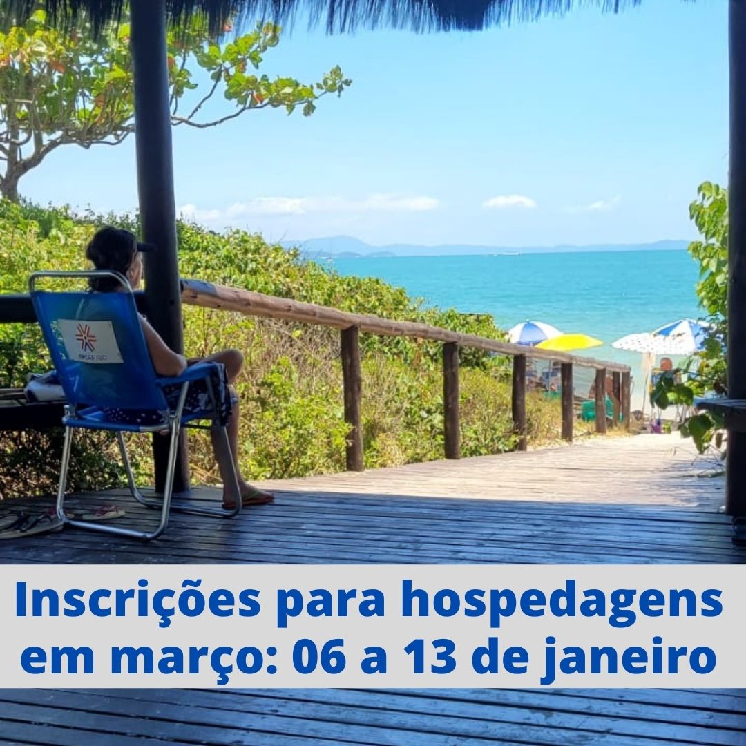 No dia 6 de janeiro inicia o período de inscrições para as hospedagens na sede, durante o mês de março Para se inscrever, basta acessar o Portal do Associado e utilizar sua matrícula e senha. Início das inscrições: 06/01/2022 Término das inscrições: 13/01/2022 Divulgação do