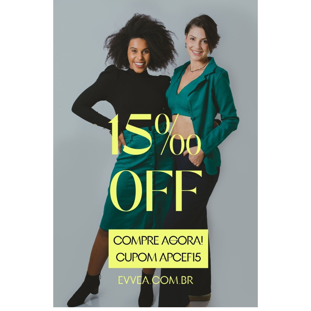 A Apcef/SC e Évvea Moda feminina firmaram uma parceria a qual associados Apcef/SC e seus dependentes, possuem descontos de 15%   Acesse o site https://evvea.com.br/ e insira o cupom: APCEF15  Contato/ Carolina: 48 99915-9965  E-mail: contato@evvea.com.br