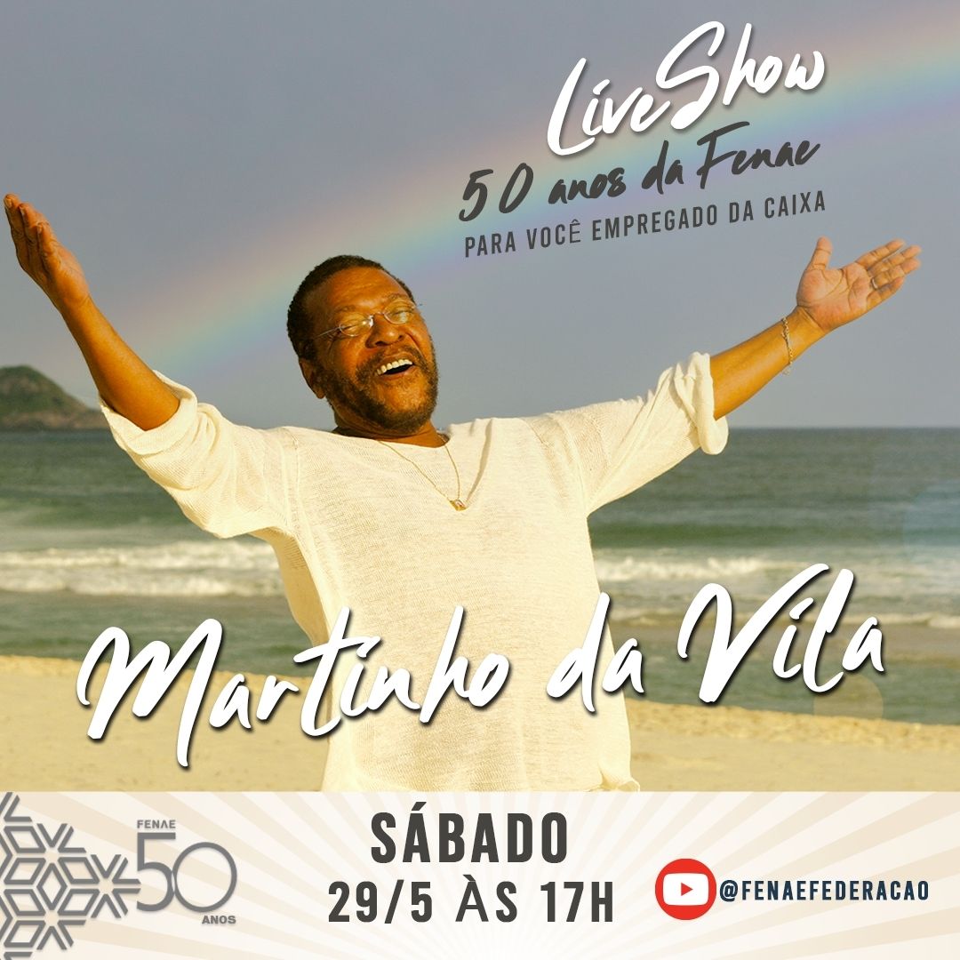 Live com show do cantor será no dia 29 de maio, sábado, às 17h. A transmissão será pelo Youtube da Fenae. Não perca! Meio século de vida merece uma comemoração especial. Por isso, no dia do aniversário da Fenae, 29 de maio, quem vai agitar