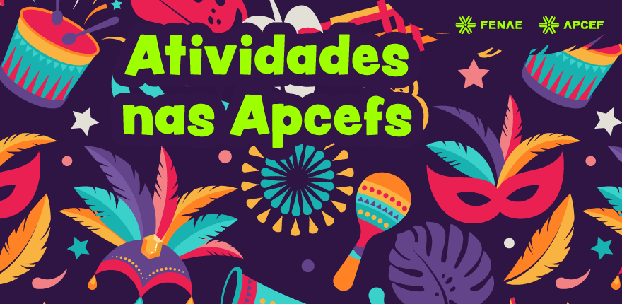 Tem Carnaval 2026 na Apcef/CE, entre sábado (14/2) e terça-feira (17/2), sempre das 12h às 15h. Os atrativos são recreação infantil, Banda Tremendão e Carlos Maia. Na Quarta-Feira de Cinzas (18/2), o Clube da associação cearense ficará fechado.