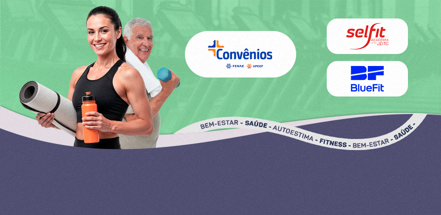 Bem-estar, saúde, autoestima e fitness têm tudo a ver com o dia a dia dos empregados da Caixa ativos, aposentados, pensionistas e seus dependentes associados às Apcefs. Representam qualidade de vida e são fatores fundamentais que se conectam com a nova etapa da plataforma de Convênios da Fenae. Há descontos especiais em produtos naturais e orgânicos, alimentação saudável, atividade física, atendimento médico on-line e medicamentos.