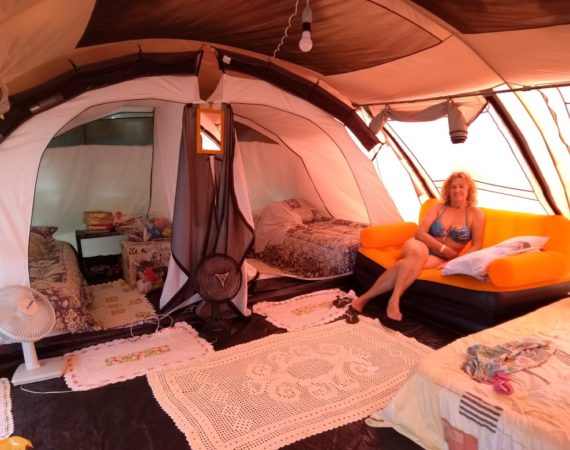 O Camping da sede está repleto. Repleto de barracas, famílias e histórias.