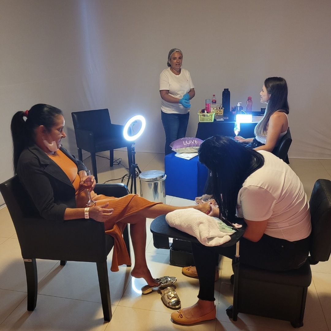 Além das massagens relaxante, modeladora, para pés e mãos, manicure, e design de sobrancelhas as associadas desfrutaram de um coquetel com espumantes. Cada uma recebeu ainda um mimo pela participação.