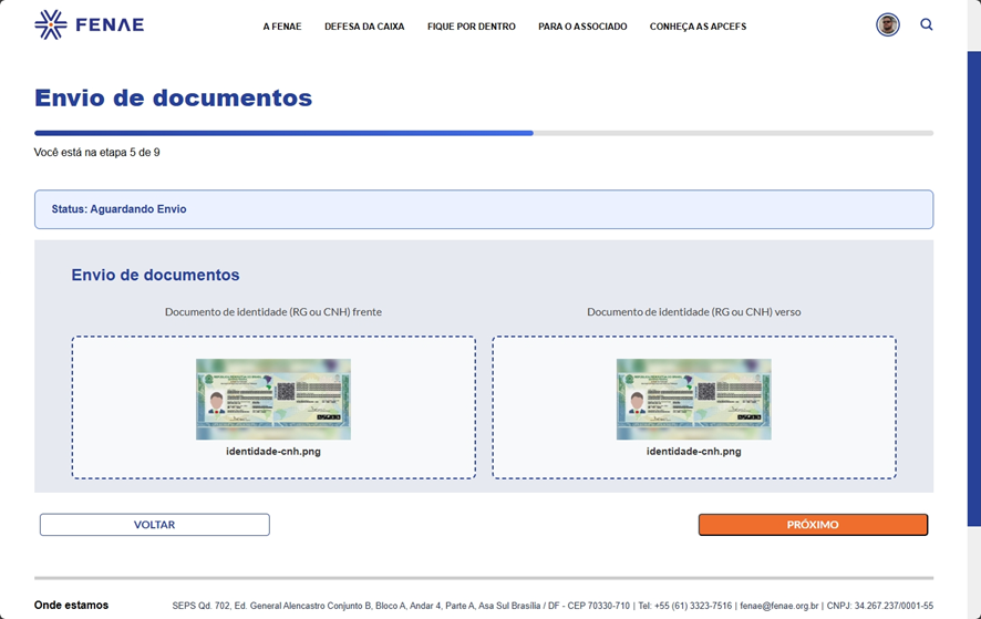 8. Etapa 5 de 9 – Envio do documento de identidade (RG ou CNH)