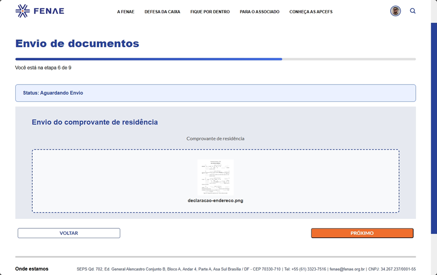 9. Etapa 6 de 9 – Envio do comprovante de residência