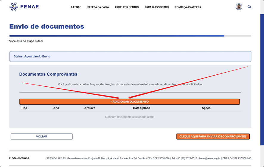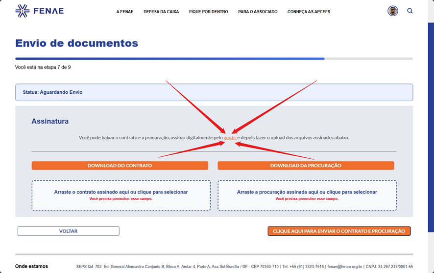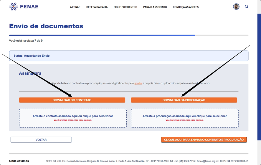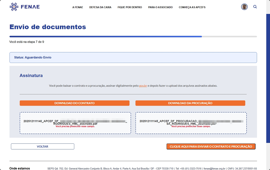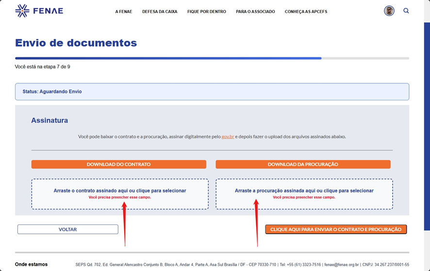 Tutorial: como enviar contrato, procuração e documentos pelo site da Fenae