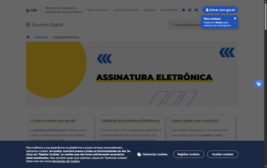 10.3. No site do GOV.BR – Aceitando cookies e escolhendo a assinatura eletrônica