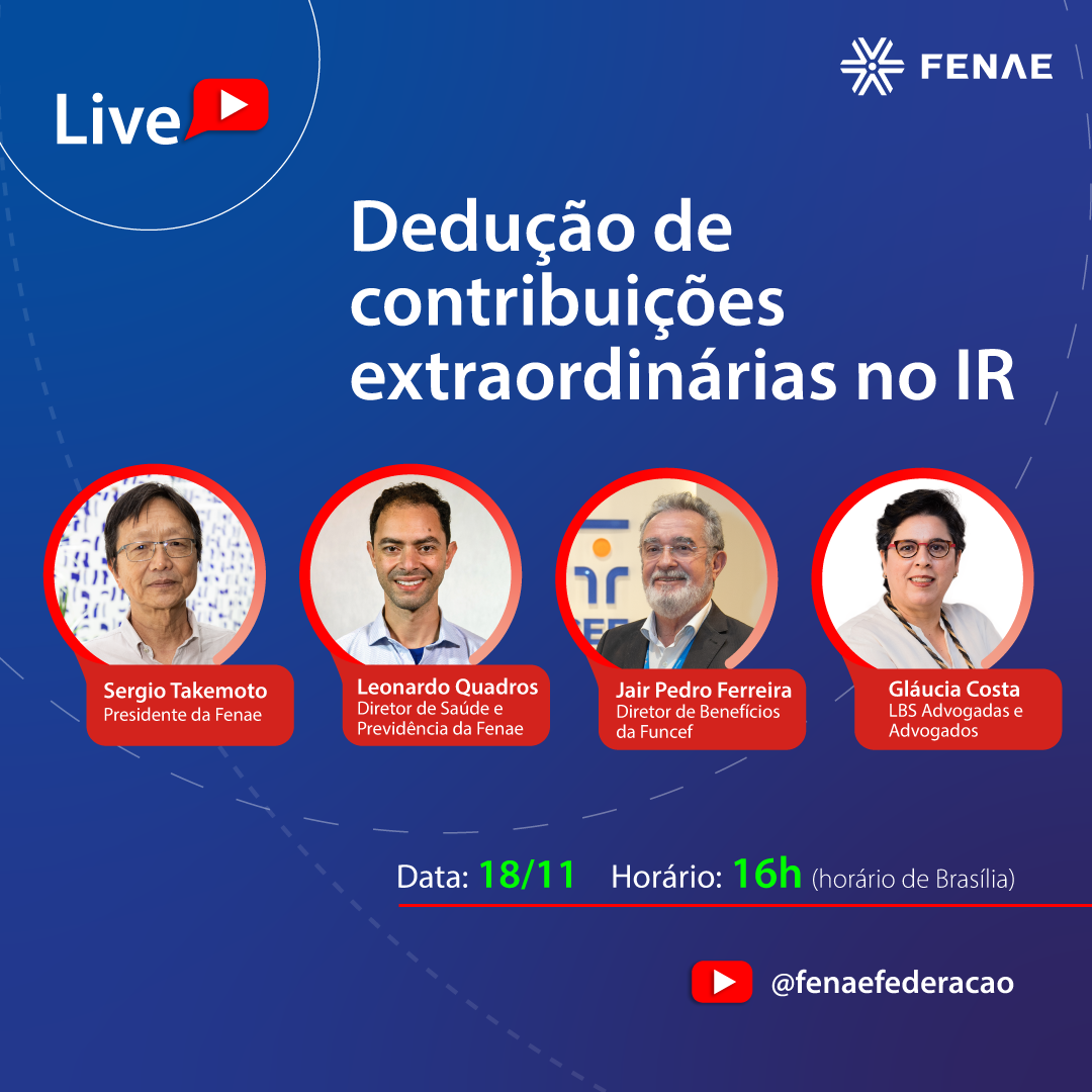 A live terá como objetivo esclarecer, de forma técnica e institucional, os efeitos da recente decisão do Superior Tribunal de Justiça (STJ), que reconheceu o direito à dedução das contribuições extraordinárias — destinadas ao equacionamento de déficits dos fundos de pensão — na base de cálculo do Imposto de Renda, até o limite de 12%.
